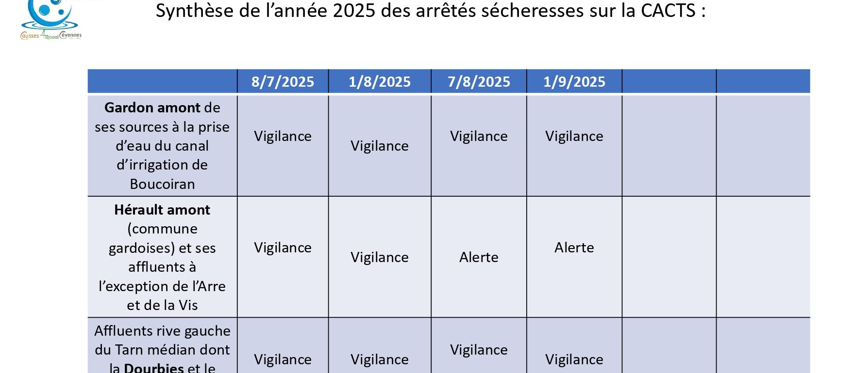 Suivi des arrêtés sécheresses sur la Communauté de communes Causses Aigoual Cévennes Terres Solidaires :