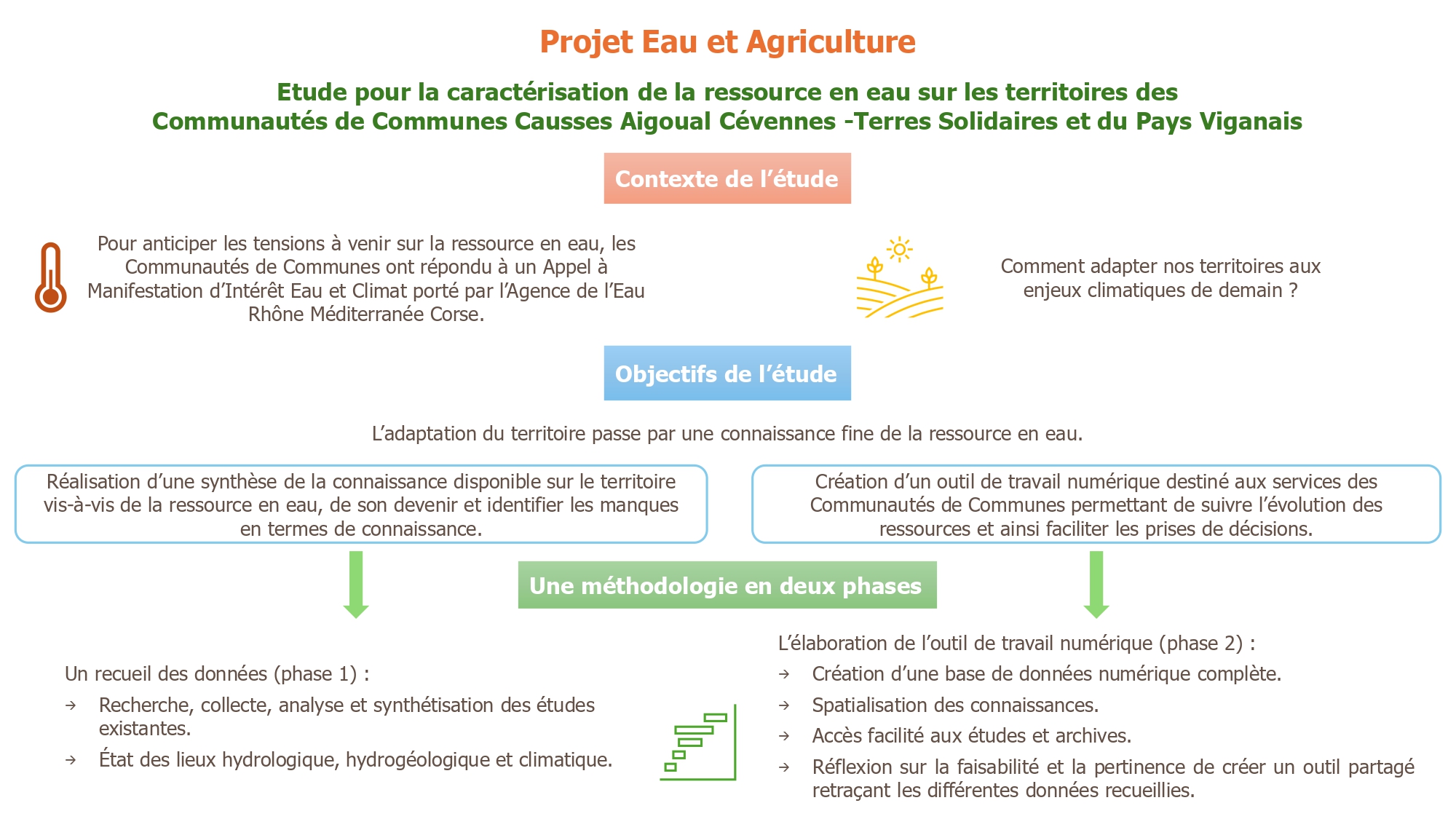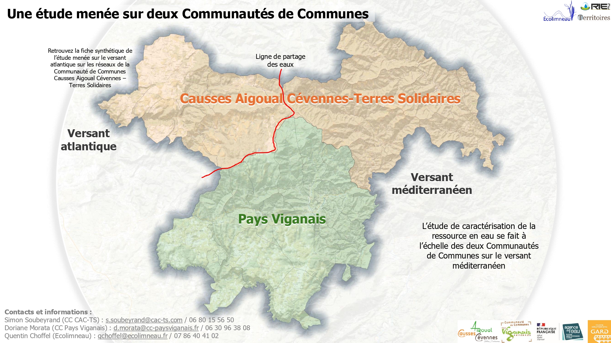 L’étude a débutée par une phase de recherche, de collecte et d’analyse des différentes données, documents et études hydrologiques et hydrogéologiques existantes. Portant sur le versant méditerranéen de la Communauté de Communes Causses Aigoual Cévennes mais aussi sur le territoire de la Communauté de Communes du Pays Viganais, dans le cadre d’un partenariat. L’objectif est de rassembler et d’archiver numériquement l’ensemble des informations disponibles afin de constituer un recueil complet et homogène des données relatives à la ressource en eau.
